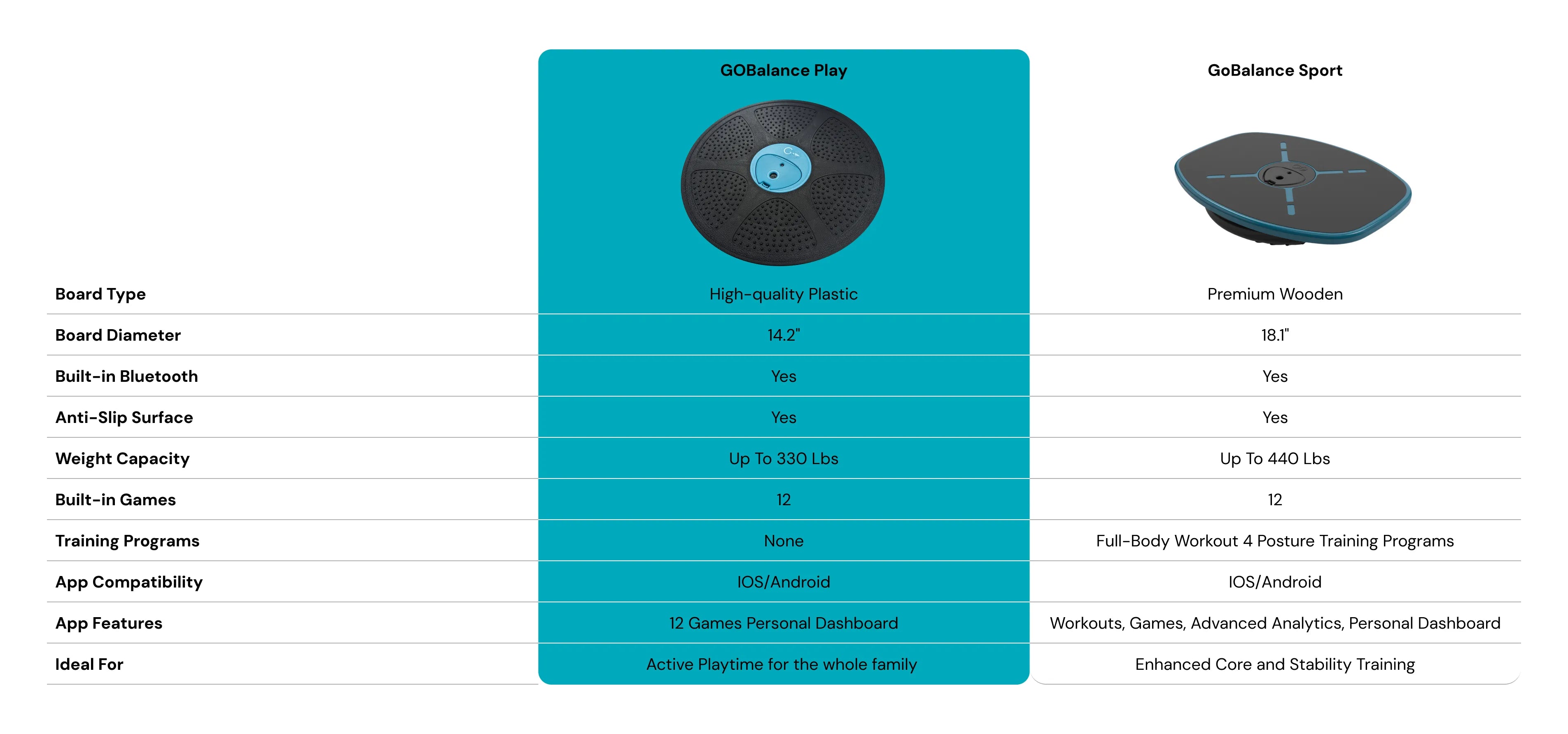 GoBalance Sport : Conçu pour les entraînements d'équilibre avancés et les routines de fitness, offrant une expérience d'entraînement plus stimulante adaptée aux amateurs de fitness et aux athlètes.